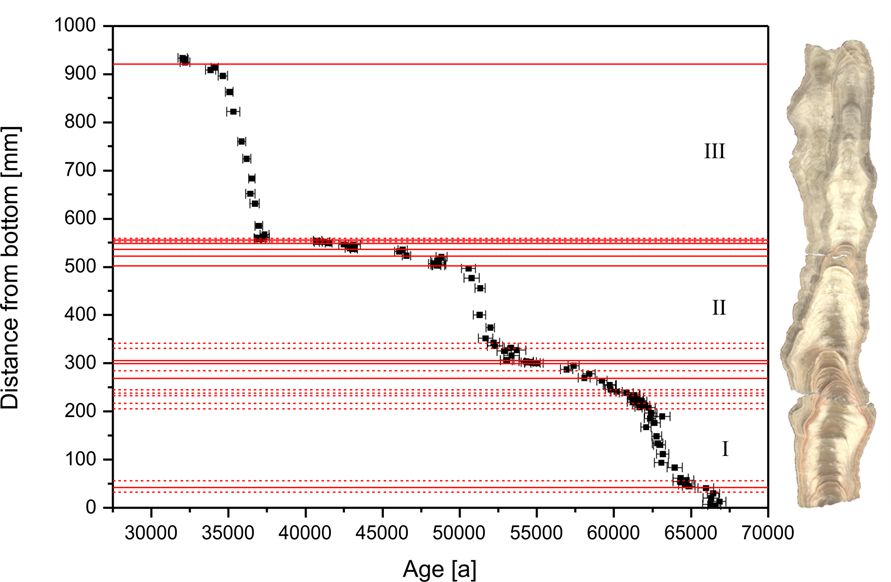 designed by me and Denis Scholz, an age model can be interpolated between dated points, as shown for the stalagmite SC-06-01 from
